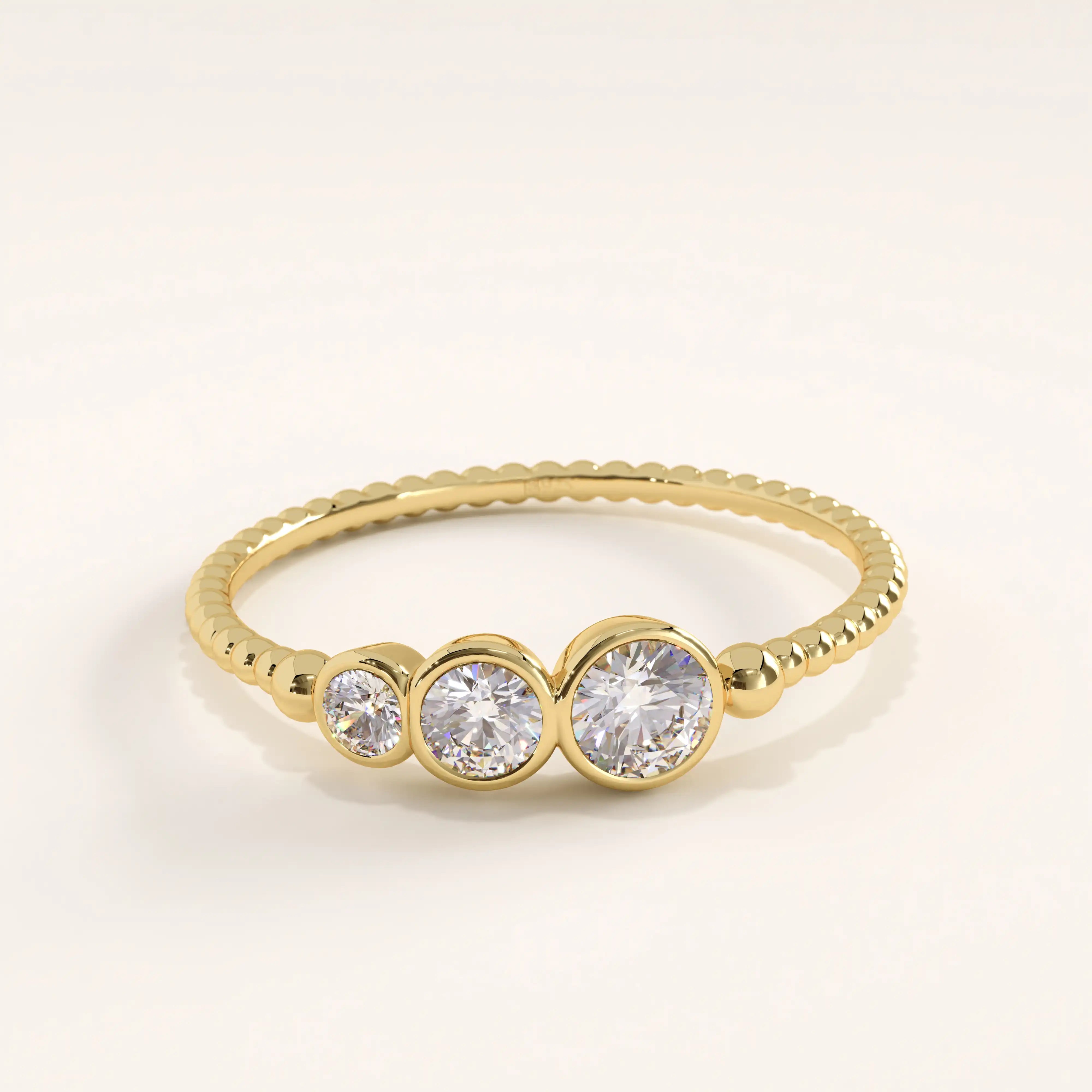 Crafted in 14k Gold Vermeil, this Trio Beaded Band Ring features three lab diamonds set in smooth bezels, resting between rounded golden beads. The rhythmic pattern creates depth and brilliance, while the polished finish adds understated sophistication. A beautifully balanced piece designed for everyday elegance.