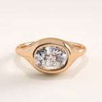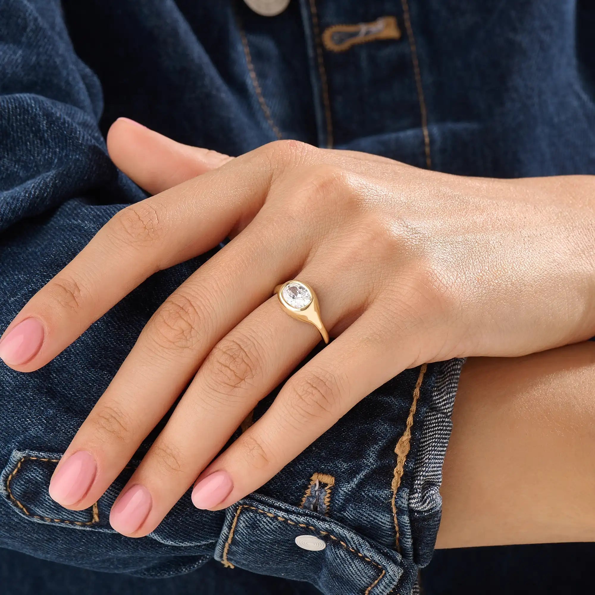 Crafted in 14k Gold Vermeil, this Oval Dome Ring features a bezel set lab diamond at its center, framed by a smooth sculpted surface. The gentle dome reflects light beautifully, highlighting the brilliance of the stone and the warmth of the gold. A refined piece that exudes confidence and elegance.