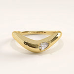 This 14k Gold Vermeil Curve Stacking Ring features a dainty pear-shaped lab diamond set on a soft contoured band. Its delicate curve is designed to nest beautifully with other rings, adding dimension and sparkle. Lightweight yet full of presence, it brings modern refinement to layered looks.