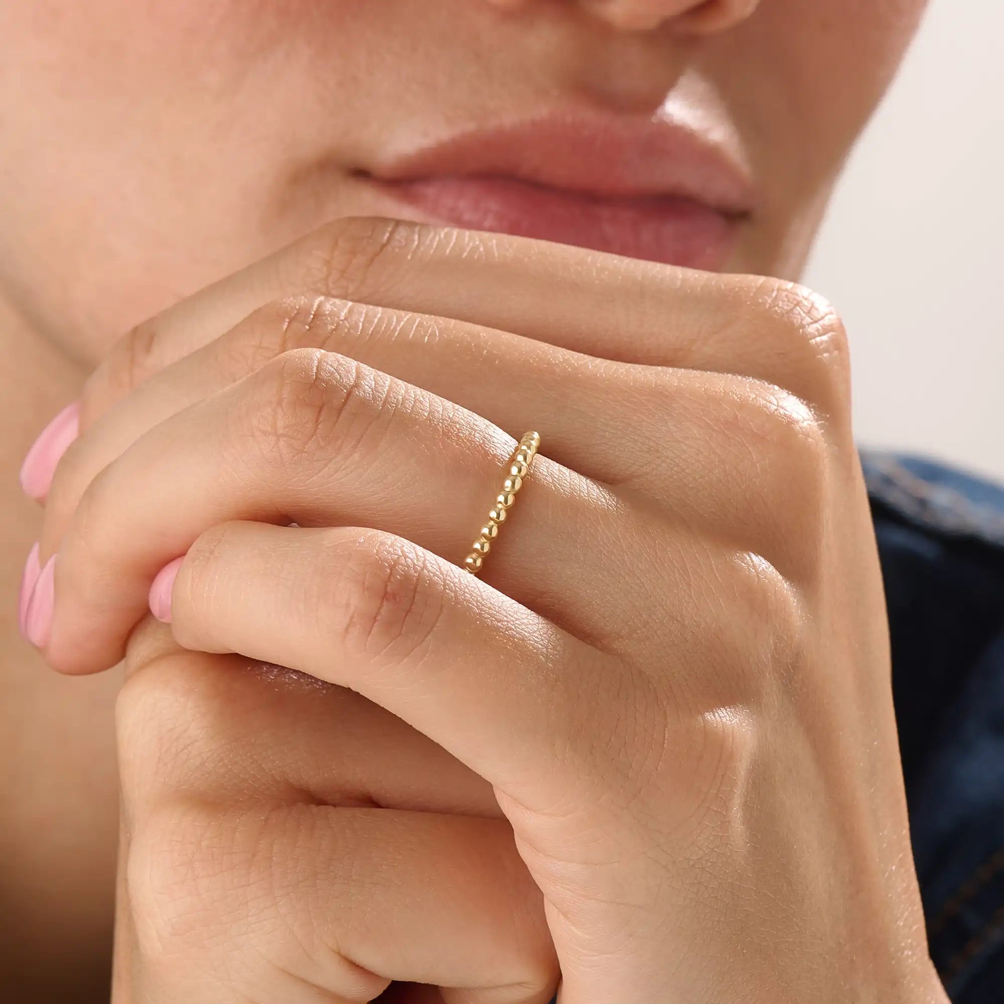 This 14k Gold Vermeil Beaded Band Ring features a delicate row of polished golden beads that reflect light with subtle brilliance. Its timeless design adds dimension and warmth, perfect for stacking with other rings or wearing alone for understated elegance. A true classic with a modern touch.