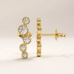 Crafted in 14k Gold Vermeil, these Cluster Earrings showcase three bezel set lab diamonds positioned in a graceful arrangement. Their sculpted golden setting enhances every glimmer, giving the piece a refined modern aesthetic. A perfect balance of artistry, precision, and luminous charm.