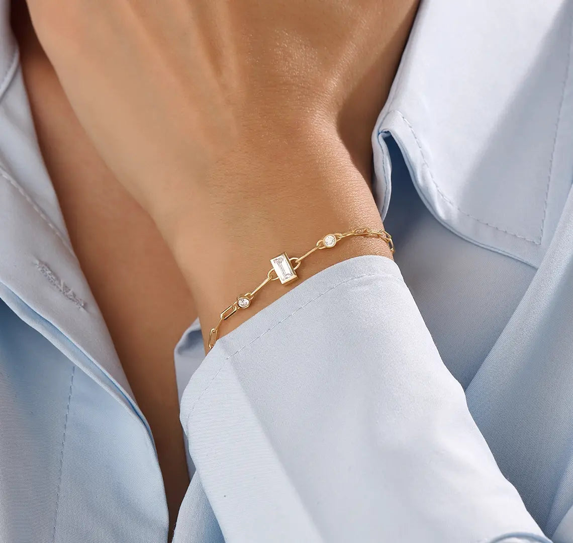 14k Gold Baguette Lab Diamond Vermeil Bracelet