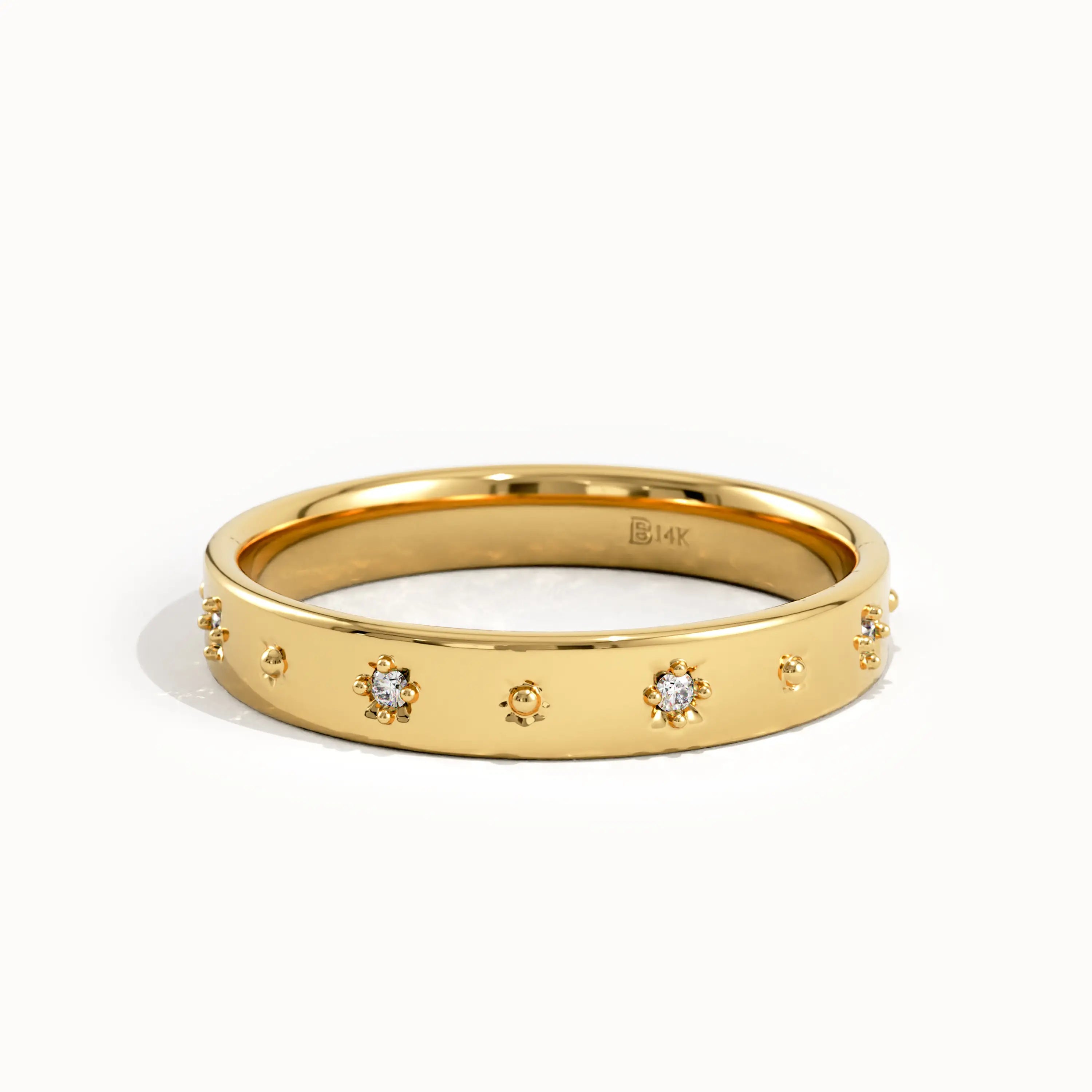 Crafted with precision, the Celestial Wedding Ring in Gold embodies timeless elegance and expert craftsmanship. Its refined design captures the essence of celestial beauty, making it a perfect symbol of enduring commitment. This ring offers both sophistication and durability, ideal for those seeking a meaningful and lasting expression of love.