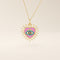 14K solid gold necklace features a beautifully detailed pink and blue enamel evil eye heart pendant