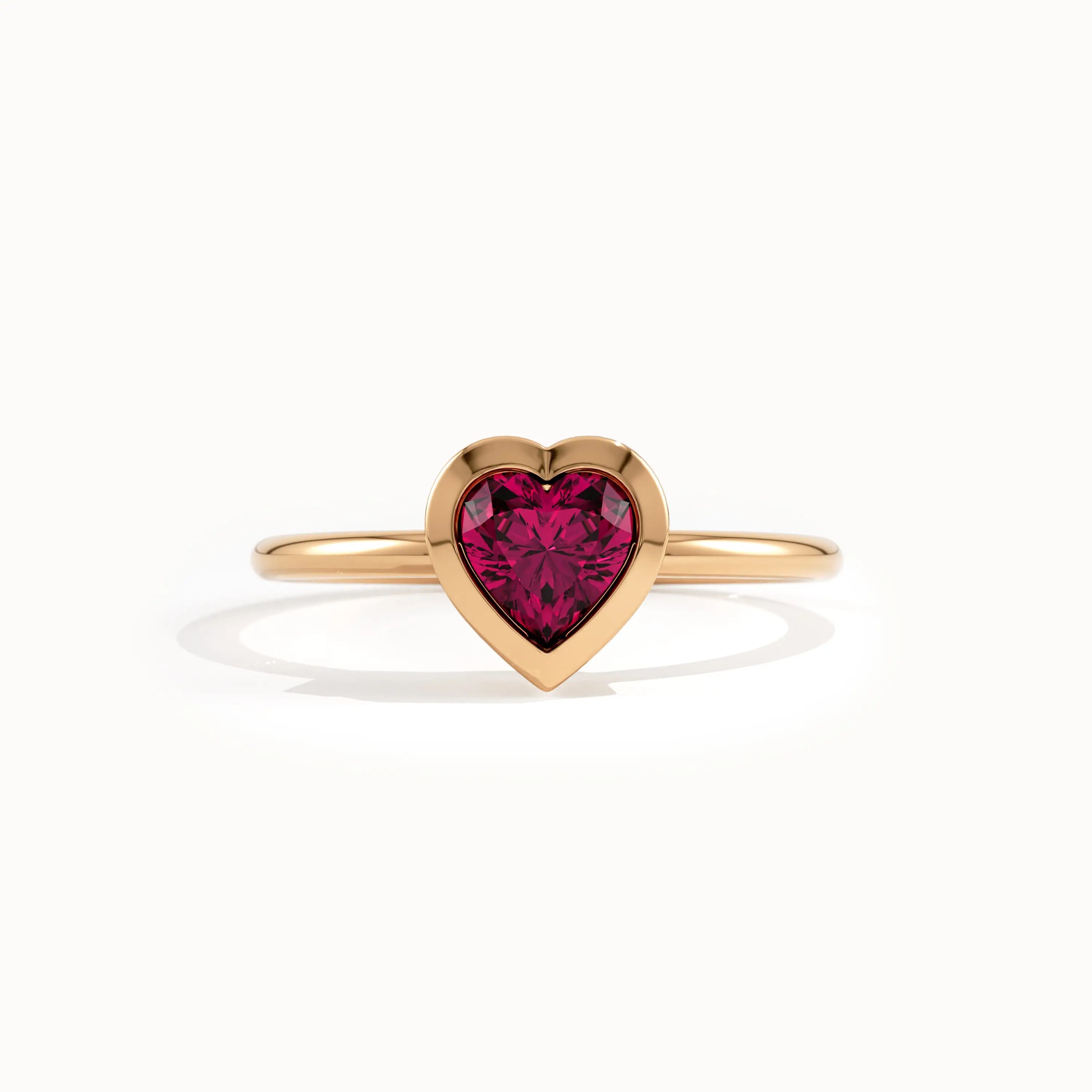 Bezel Ruby Heart Ring for Women - BRENNMORE