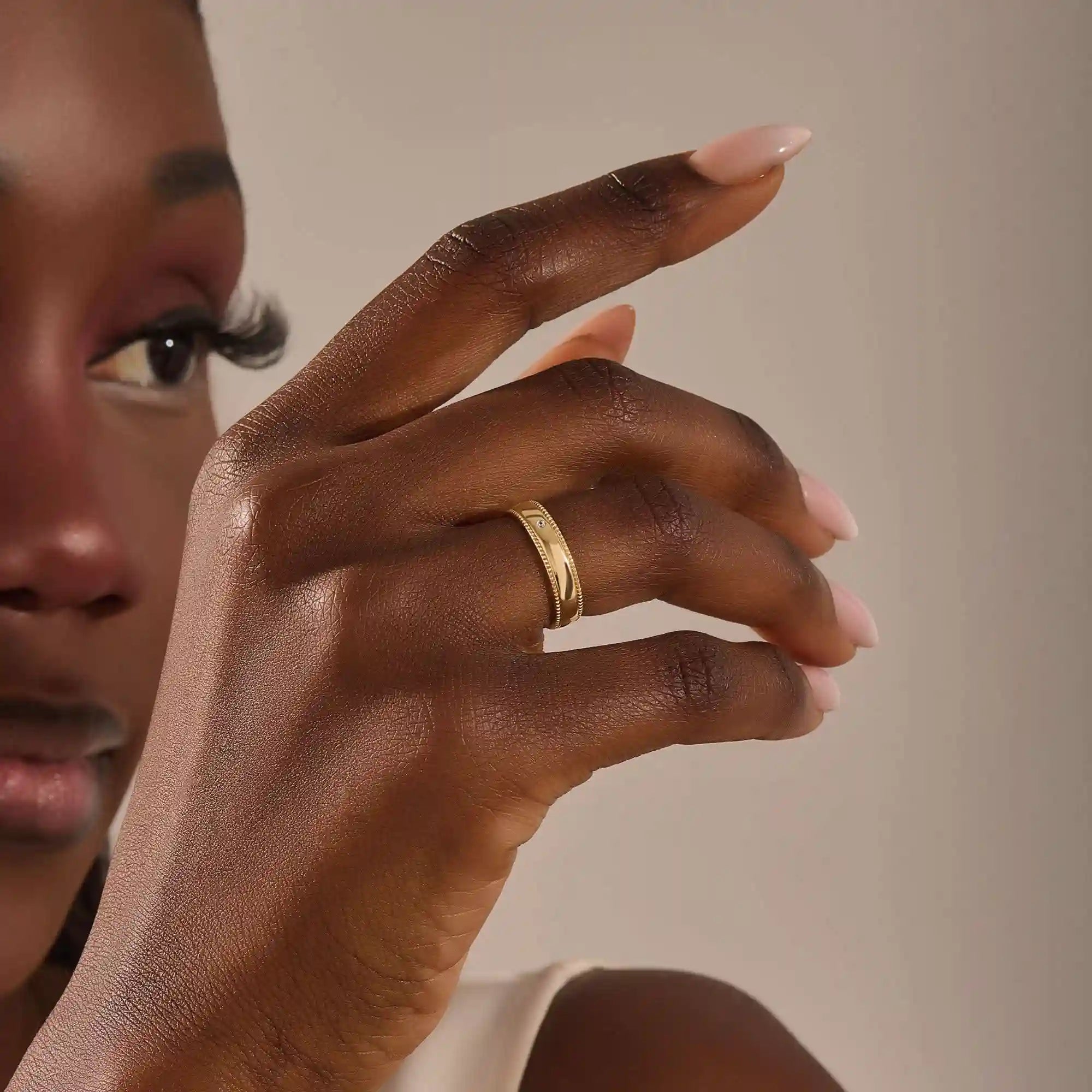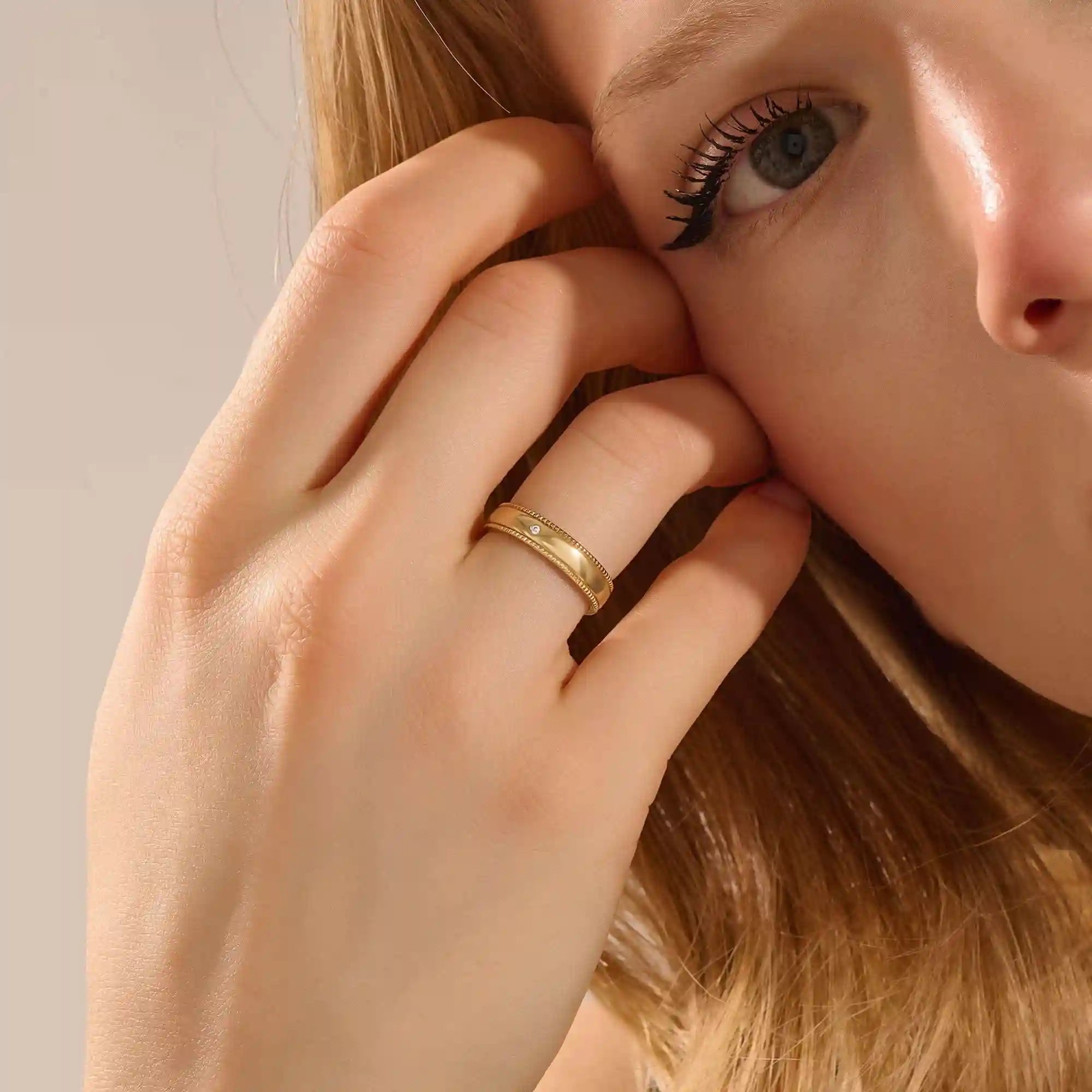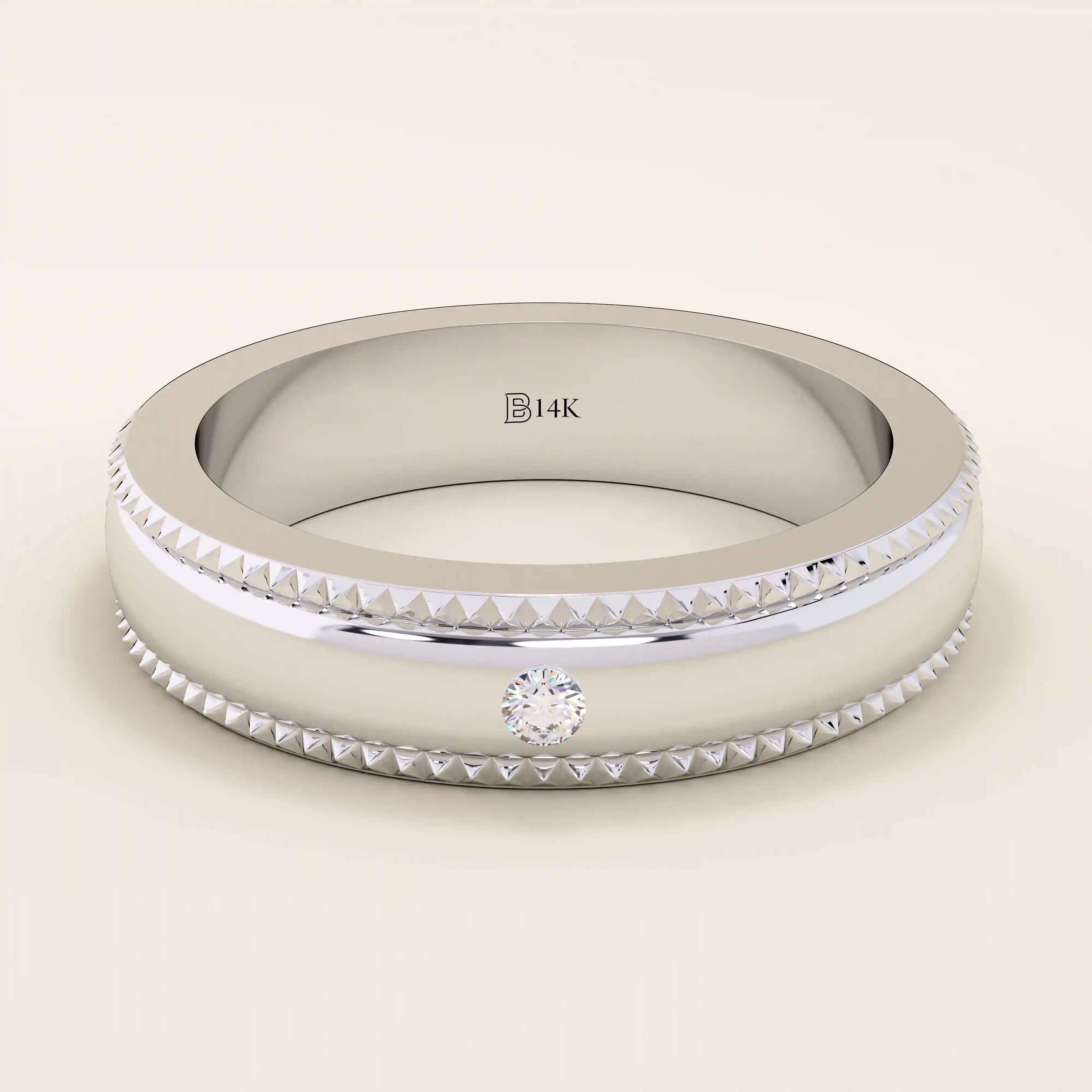 14k solid gold unisex design milgrain plain band solo small moissanite alliance wedding band