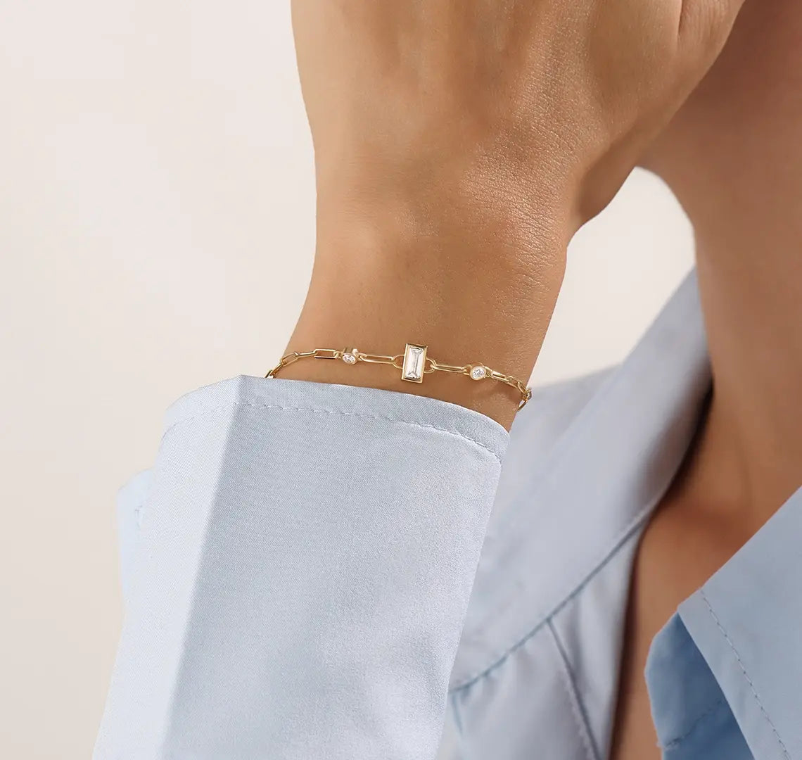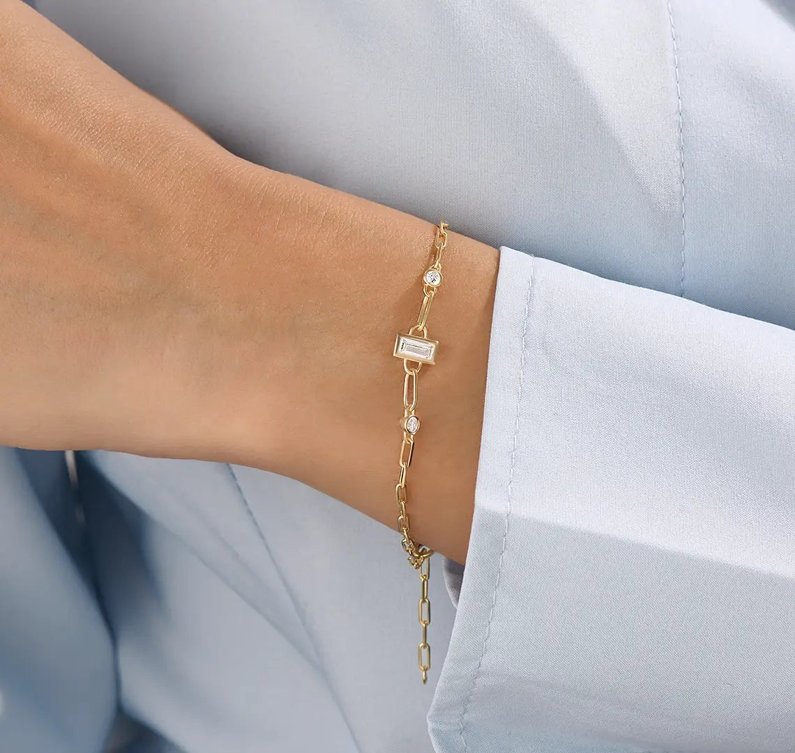 14k Gold Baguette Lab Diamond Vermeil Bracelet