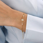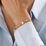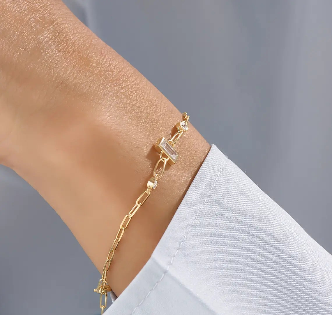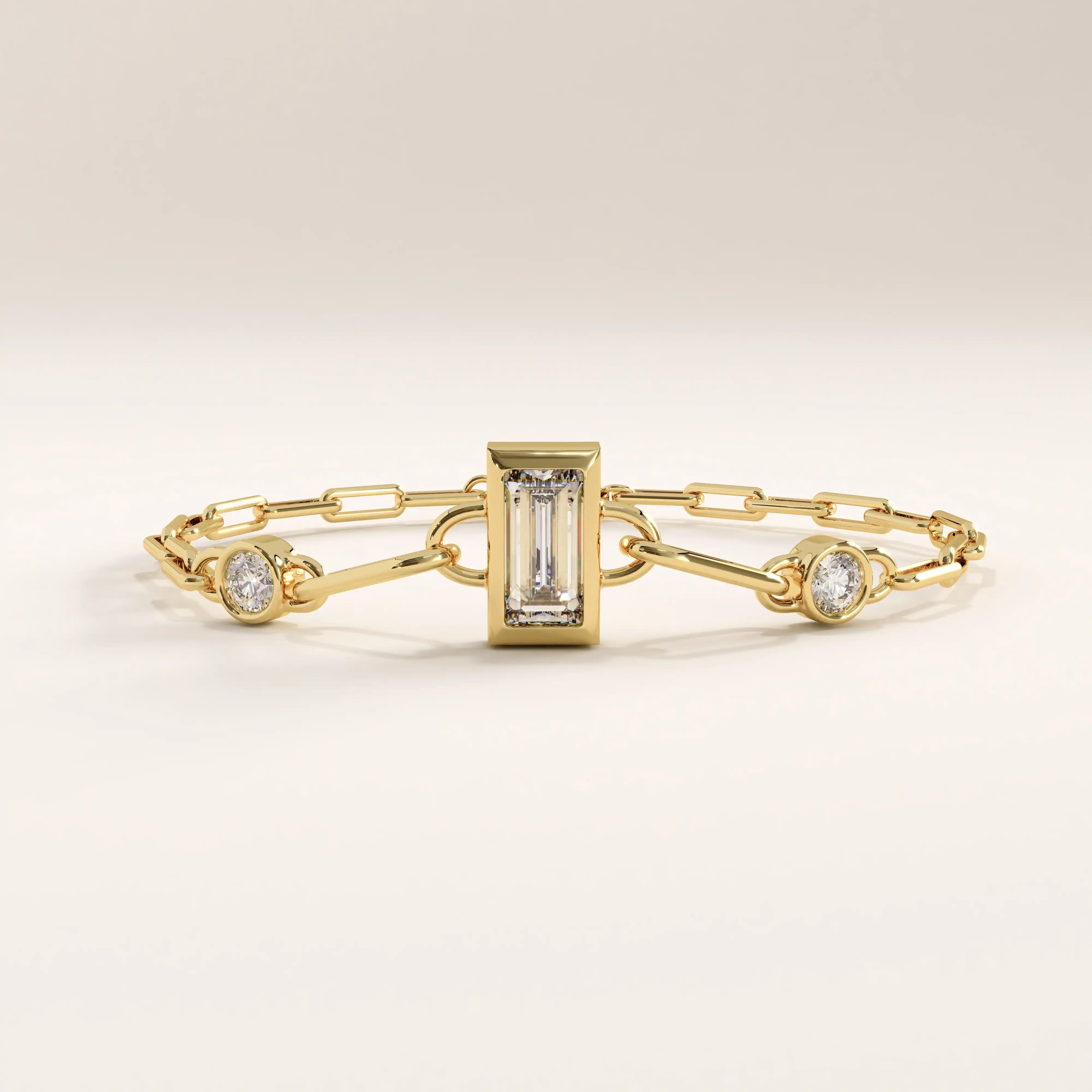 Crafted in 14k Gold Vermeil, this Baguette Lab Diamond Bracelet features a row of precision-cut stones that reflect a clean, radiant light. The geometric arrangement and smooth gold finish evoke a sense of balance and sophistication. A striking piece that merges timeless beauty with modern minimalism.