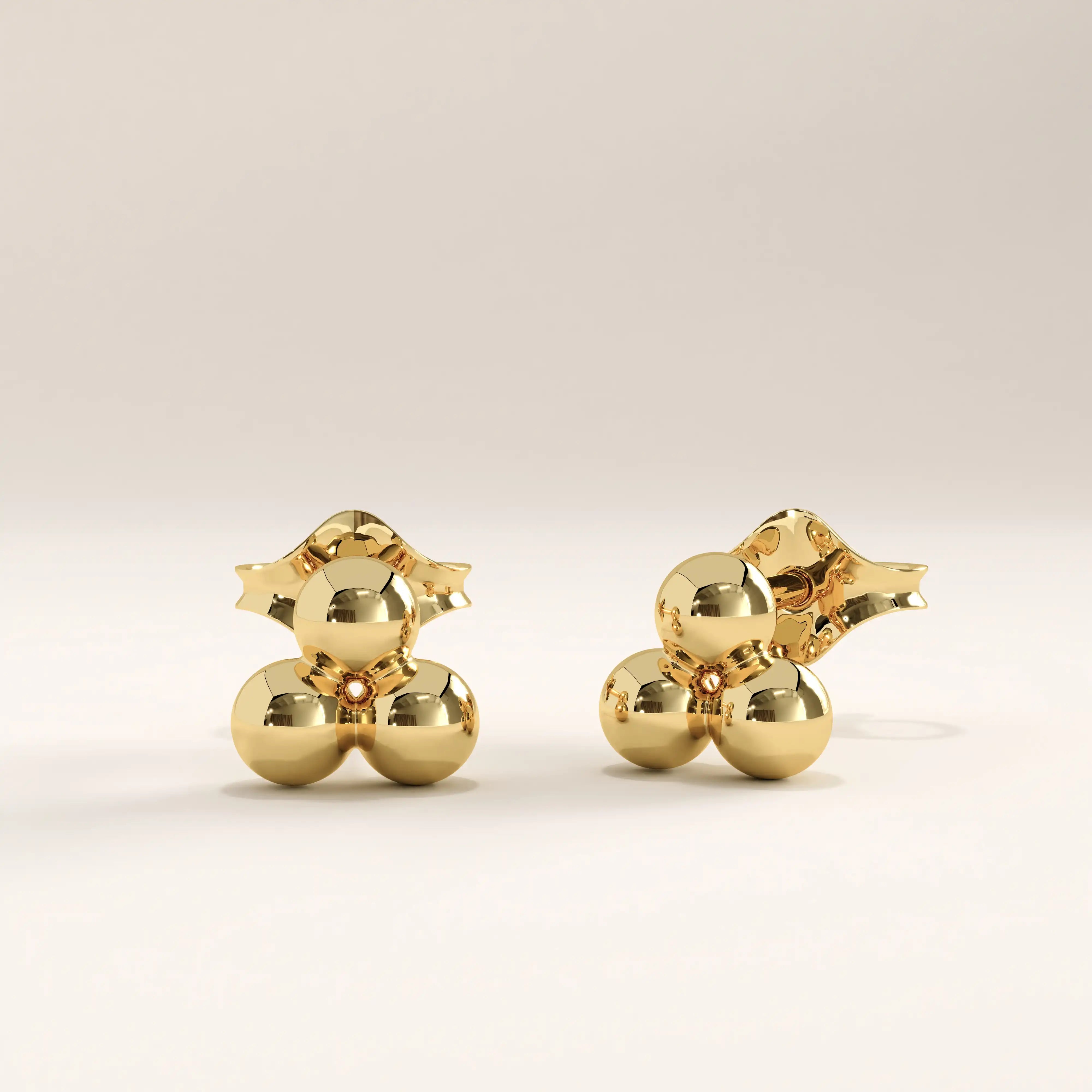 Crafted in 14k Gold Vermeil, these Trio Stud Earrings showcase three luminous beads that form a delicate geometric arrangement. Their radiant finish and smooth texture bring a touch of contemporary elegance to everyday wear. A simple yet striking design for those who love quiet luxury.
