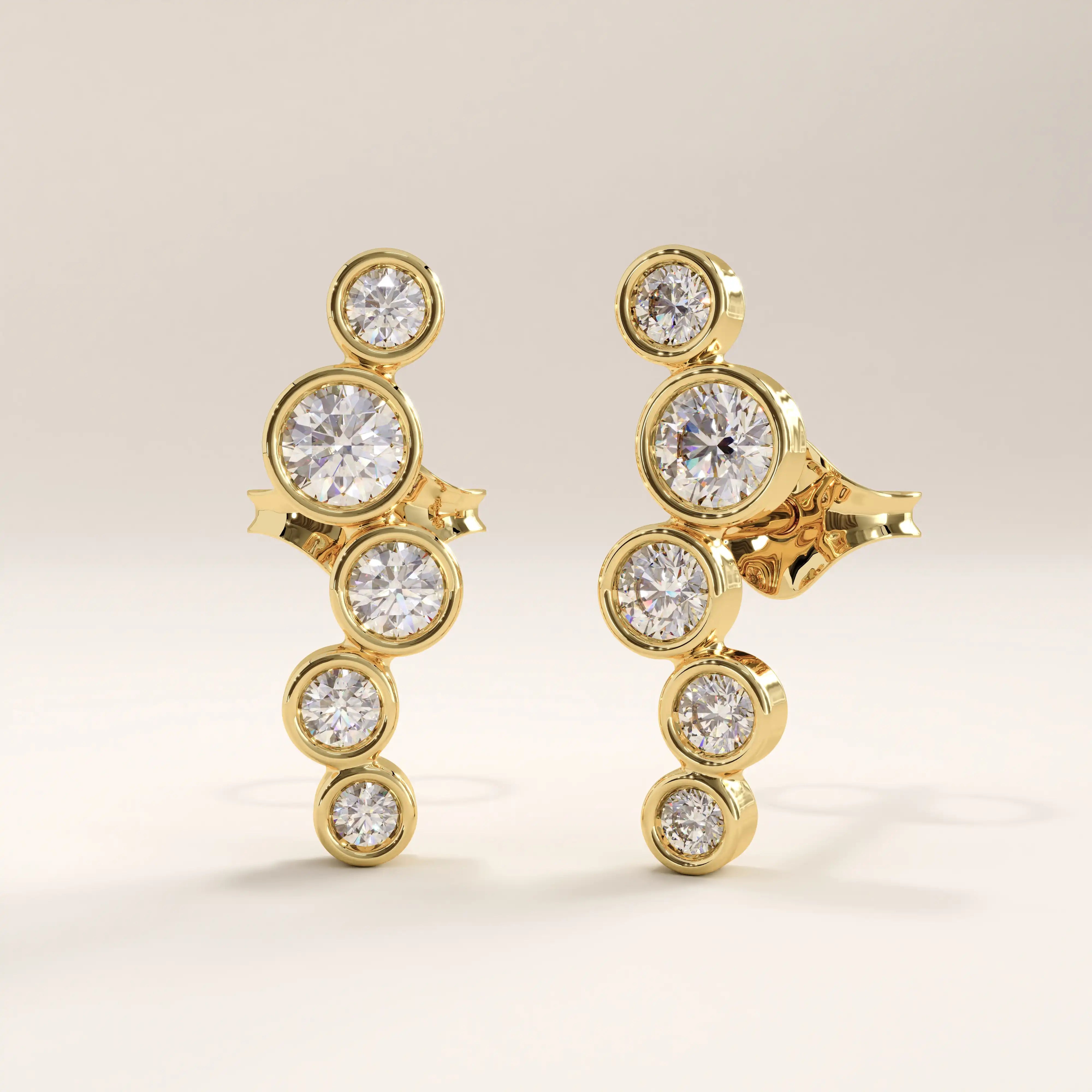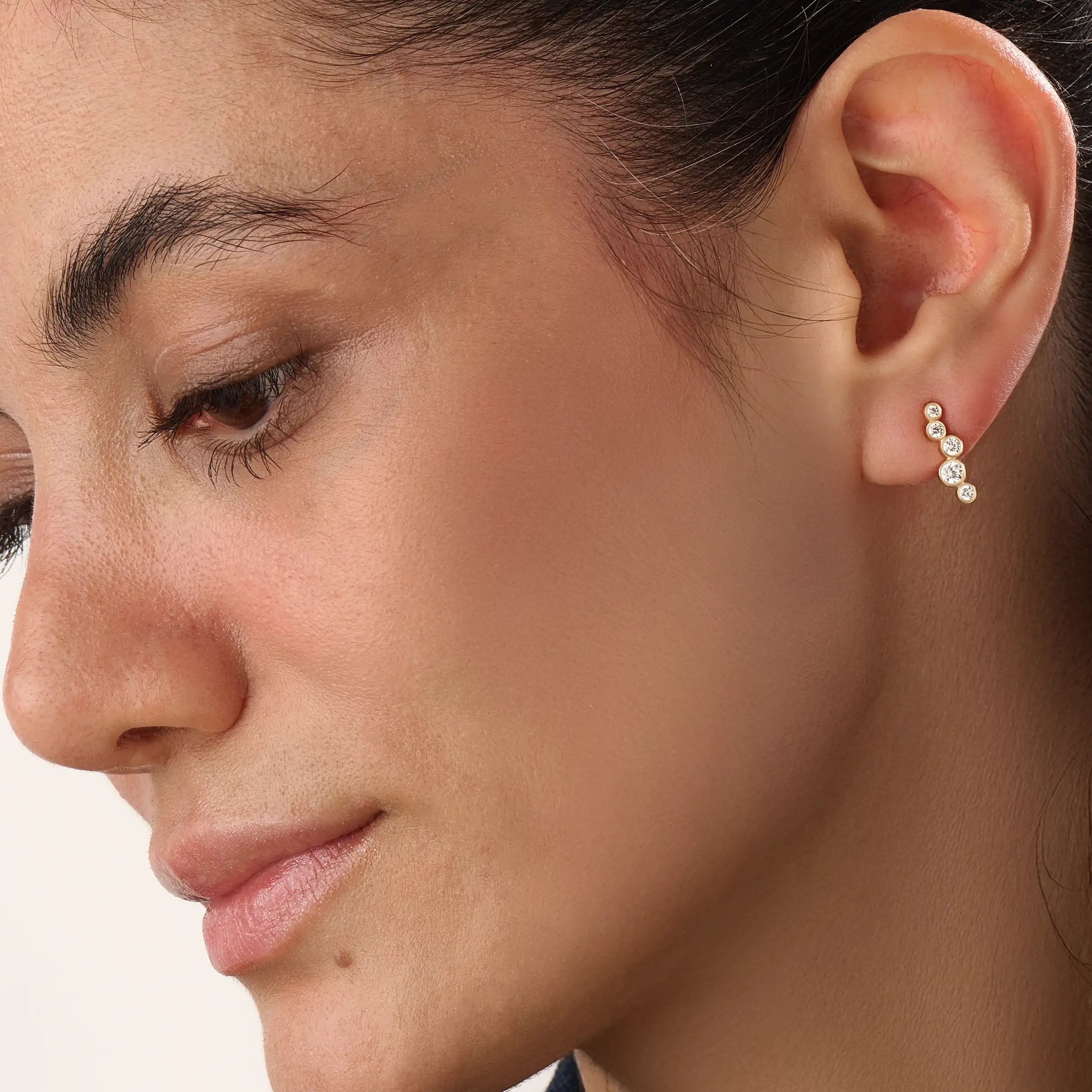 Crafted in 14k Gold Vermeil, these Cluster Earrings showcase three bezel set lab diamonds positioned in a graceful arrangement. Their sculpted golden setting enhances every glimmer, giving the piece a refined modern aesthetic. A perfect balance of artistry, precision, and luminous charm.