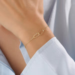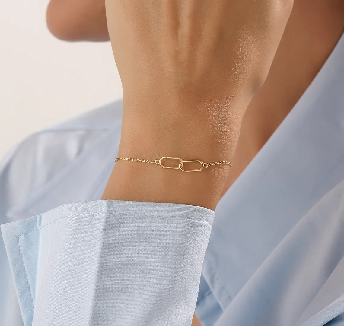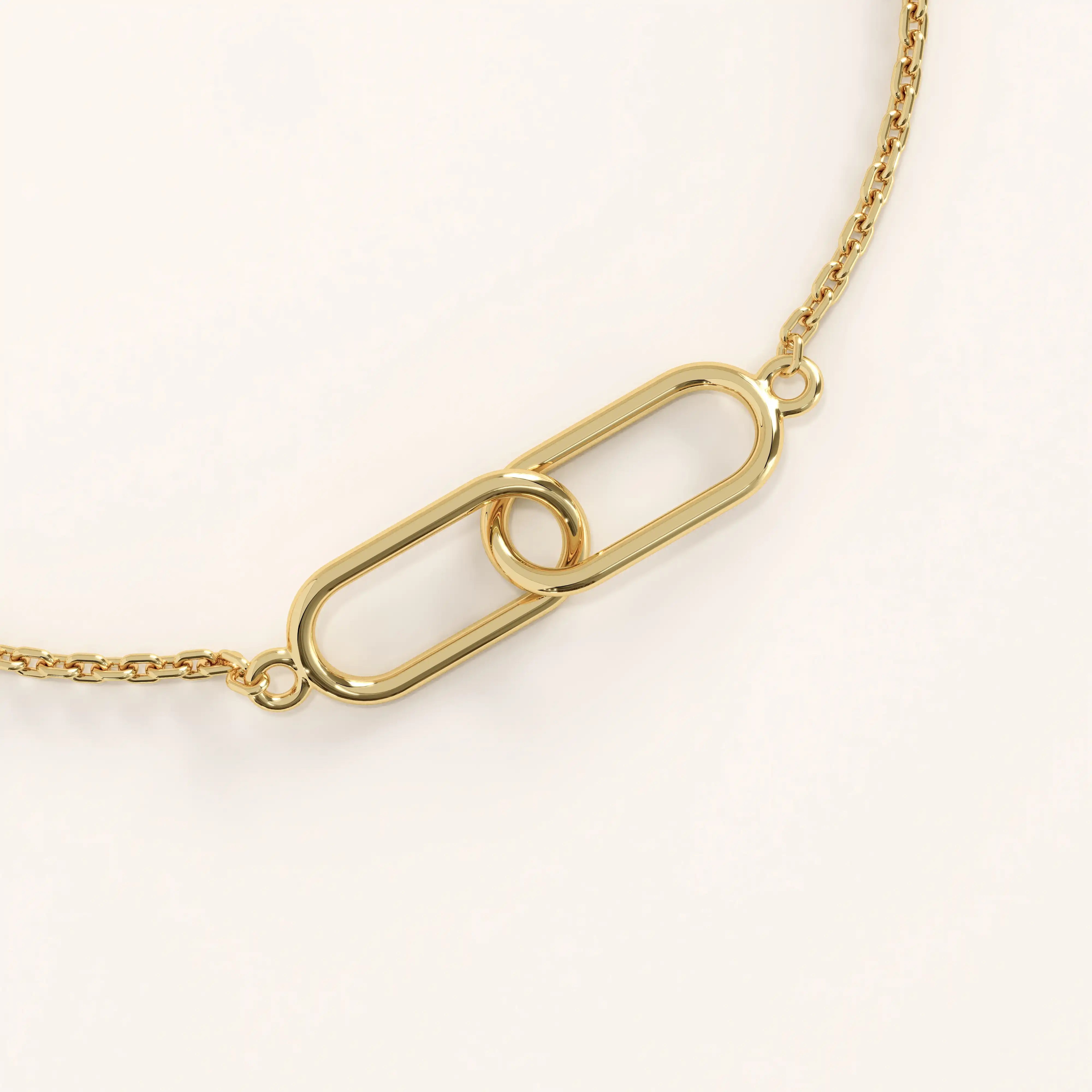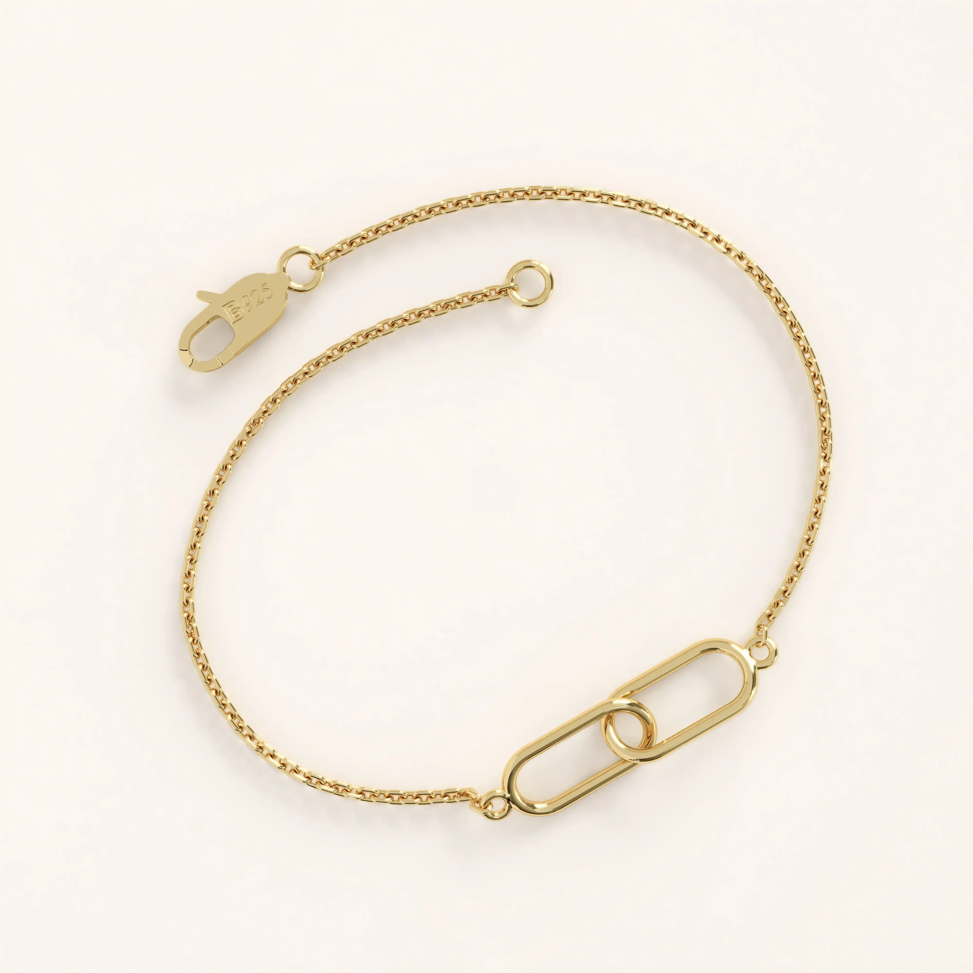 Crafted in 14k Gold Vermeil, this Interlocked Bracelet highlights two polished links joined in perfect harmony. Its fluid, sculptural design celebrates connection through refined simplicity. A versatile piece that blends timeless symbolism with golden sophistication.