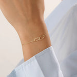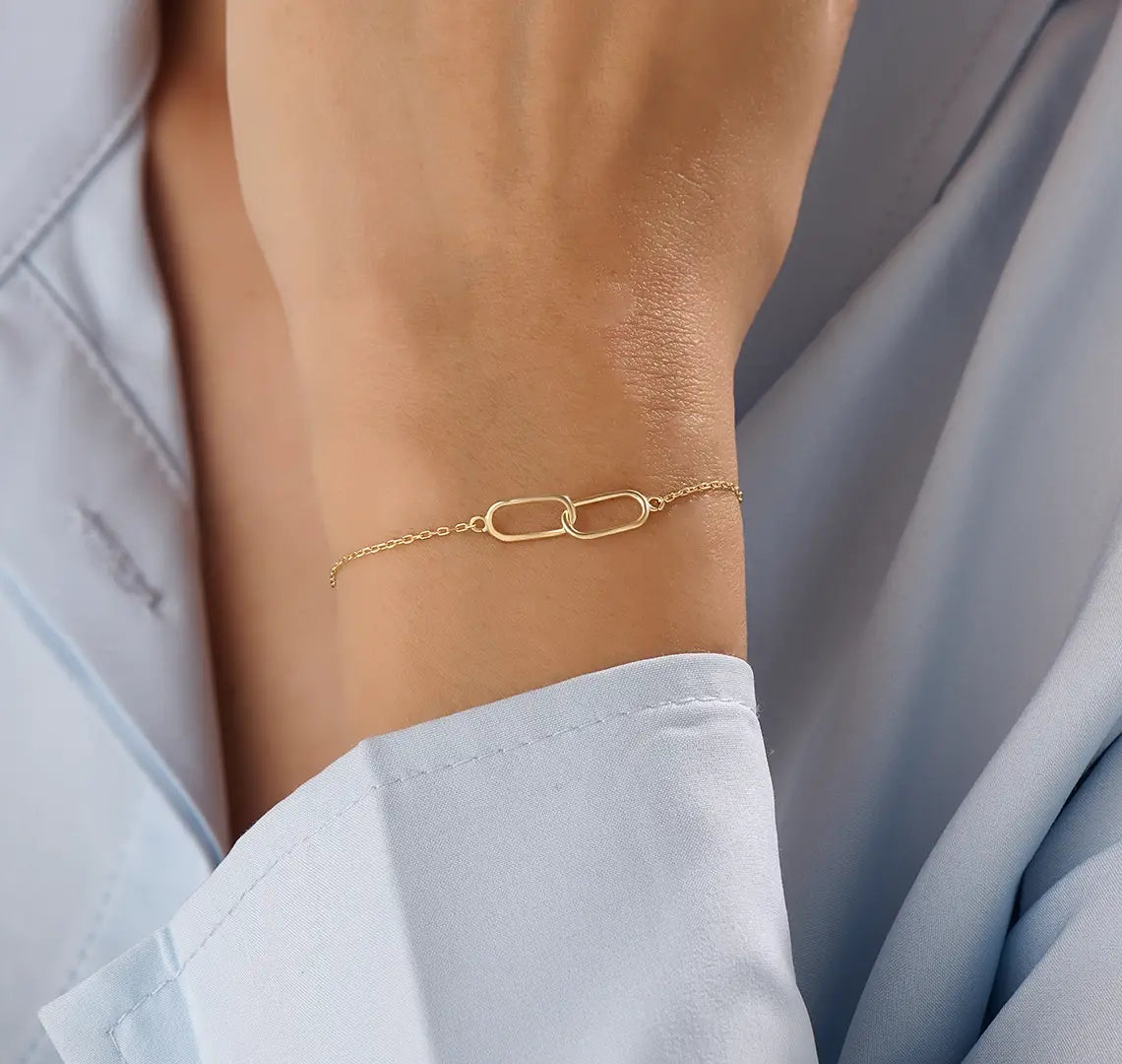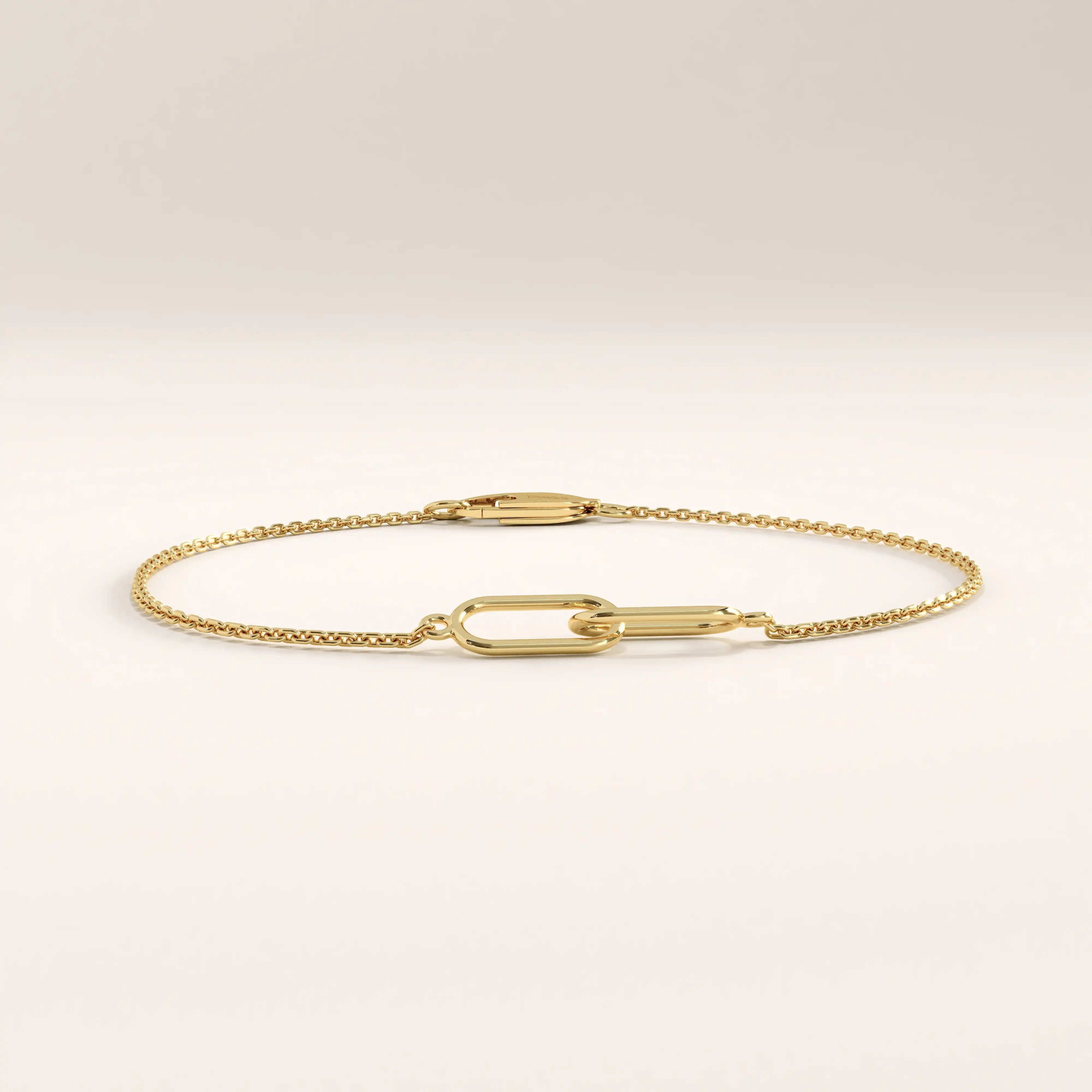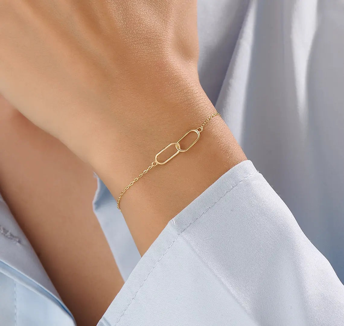 Crafted in 14k Gold Vermeil, this Interlocked Bracelet highlights two polished links joined in perfect harmony. Its fluid, sculptural design celebrates connection through refined simplicity. A versatile piece that blends timeless symbolism with golden sophistication.