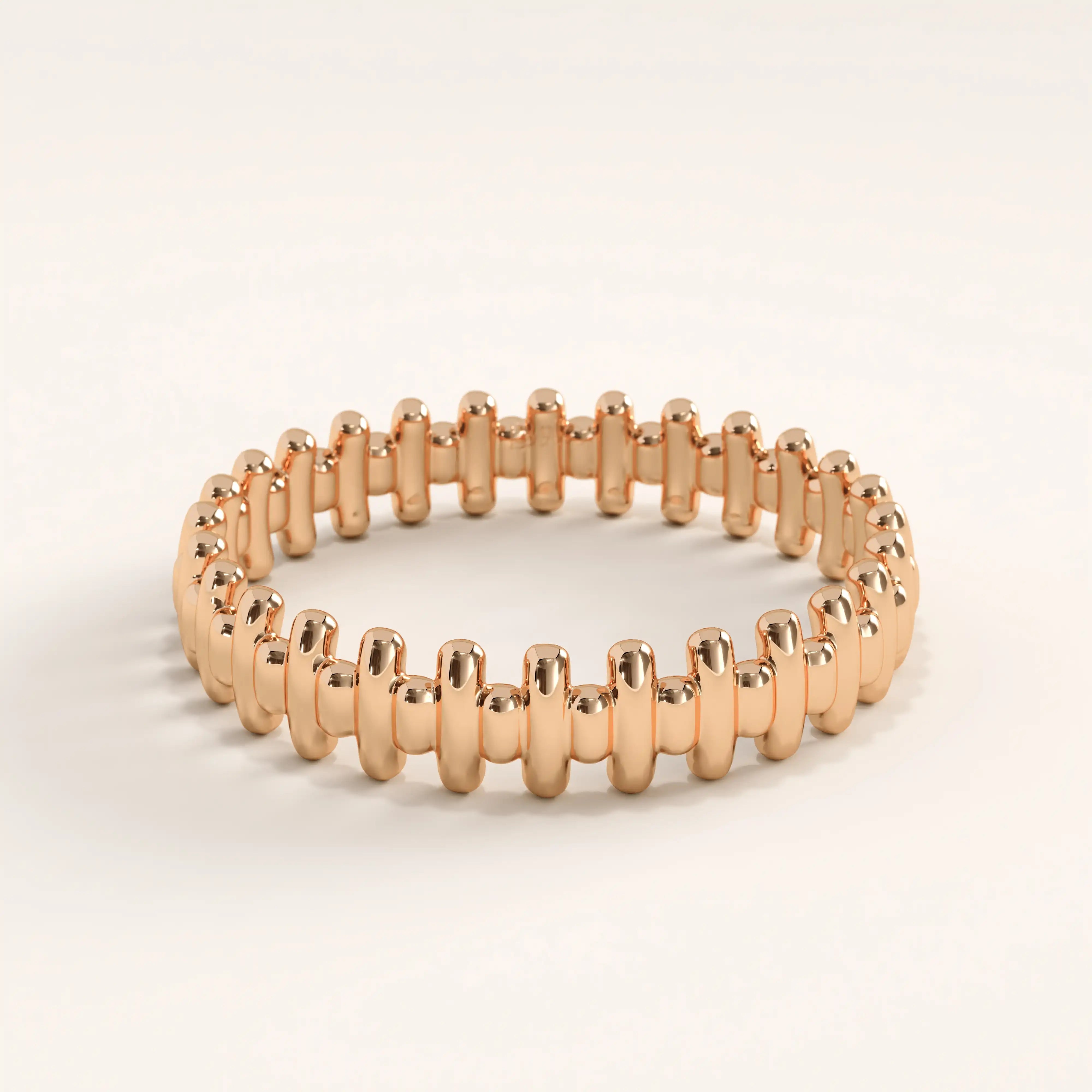 This 14k Gold Vermeil Striped Ring showcases a distinctive linear texture that adds depth and dimension to its polished golden finish. Designed for versatility, it brings a contemporary edge to classic elegance. Perfect for stacking with other bands or wearing solo for a refined, modern look.