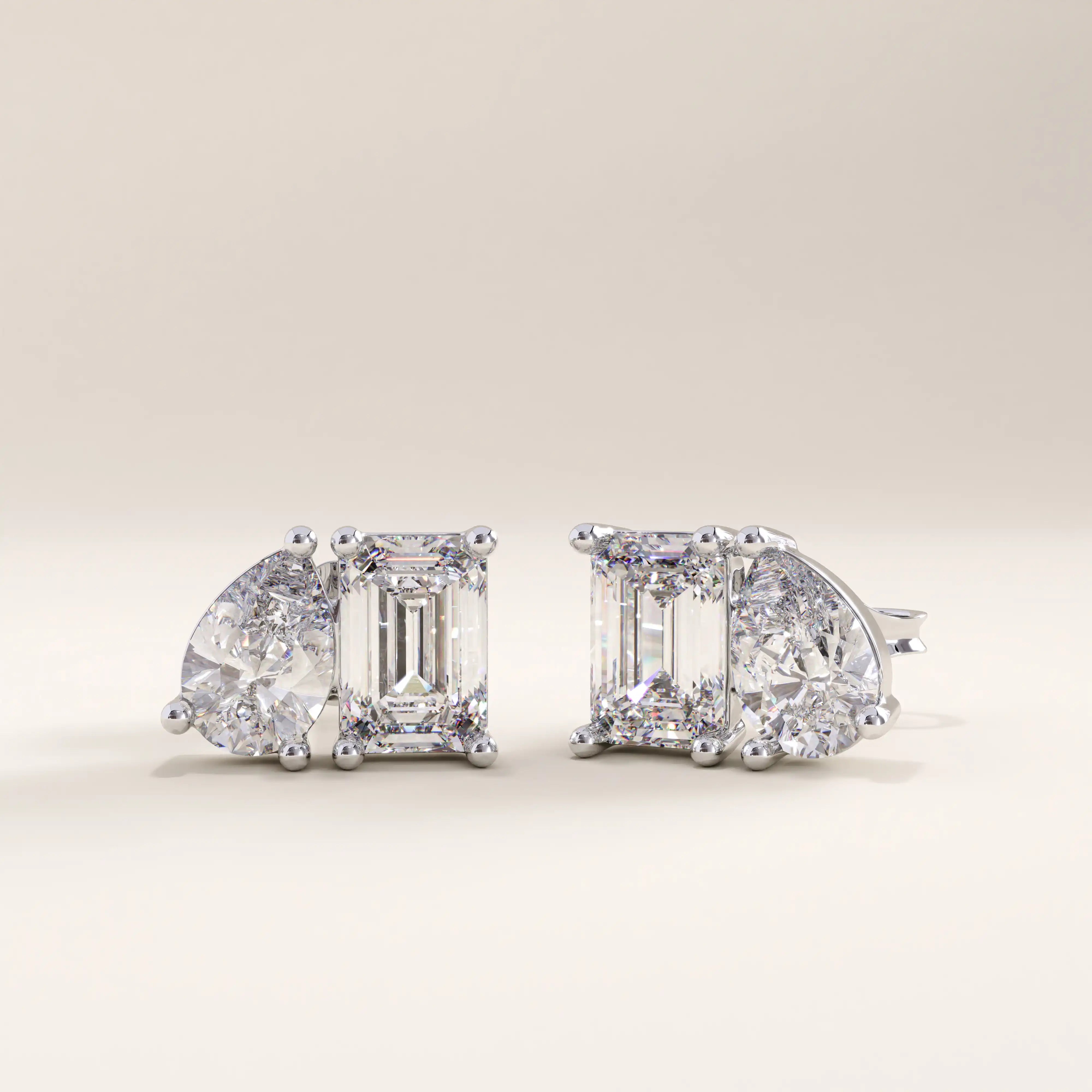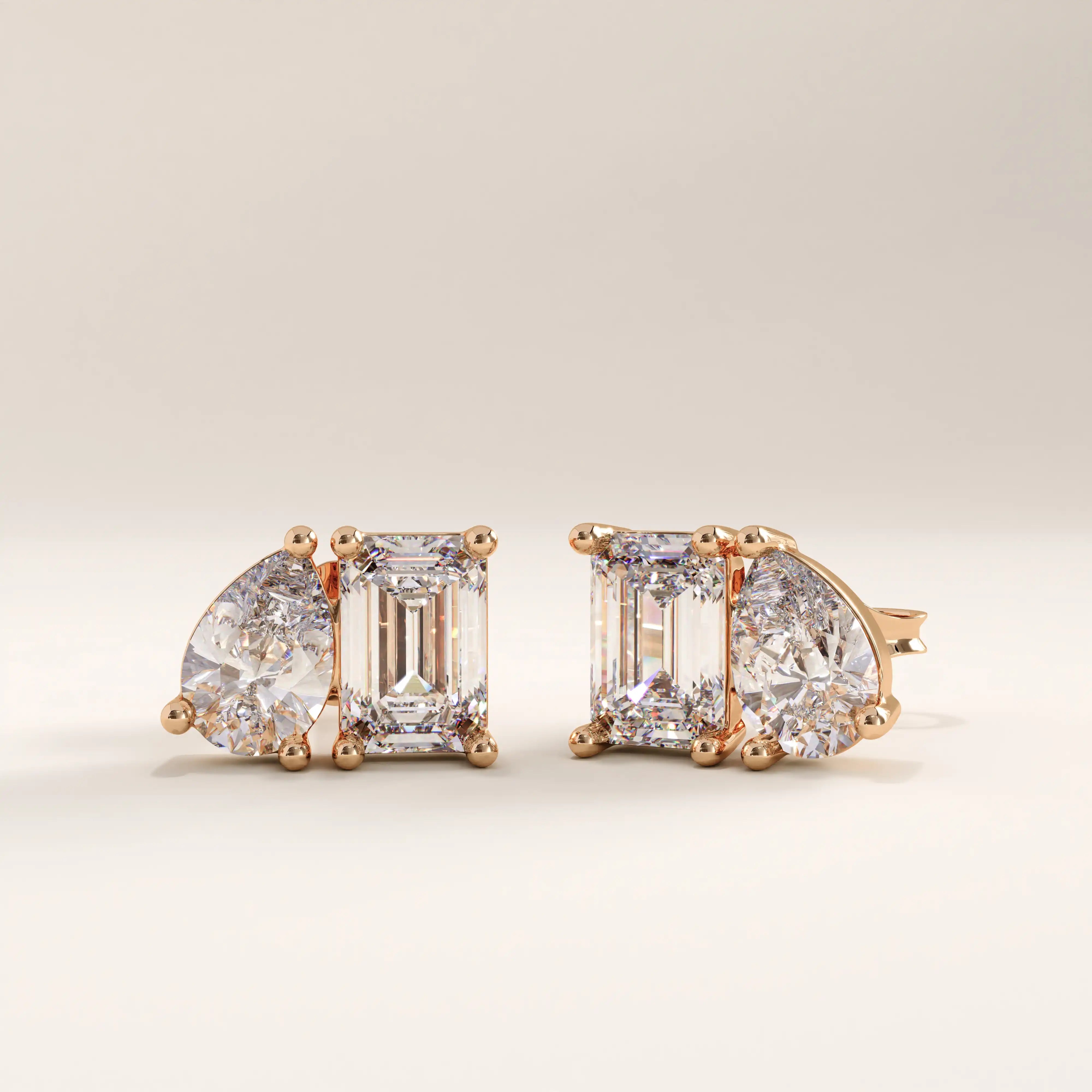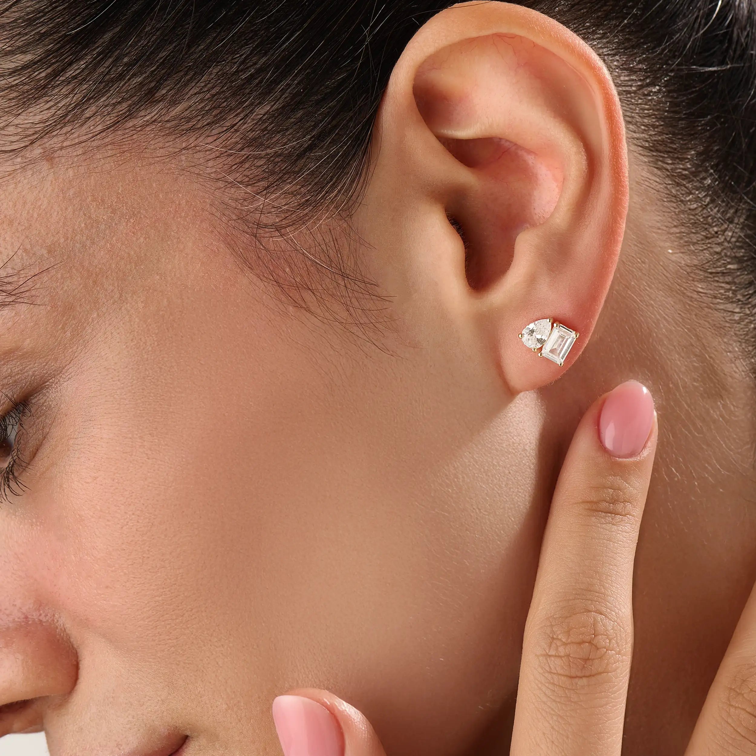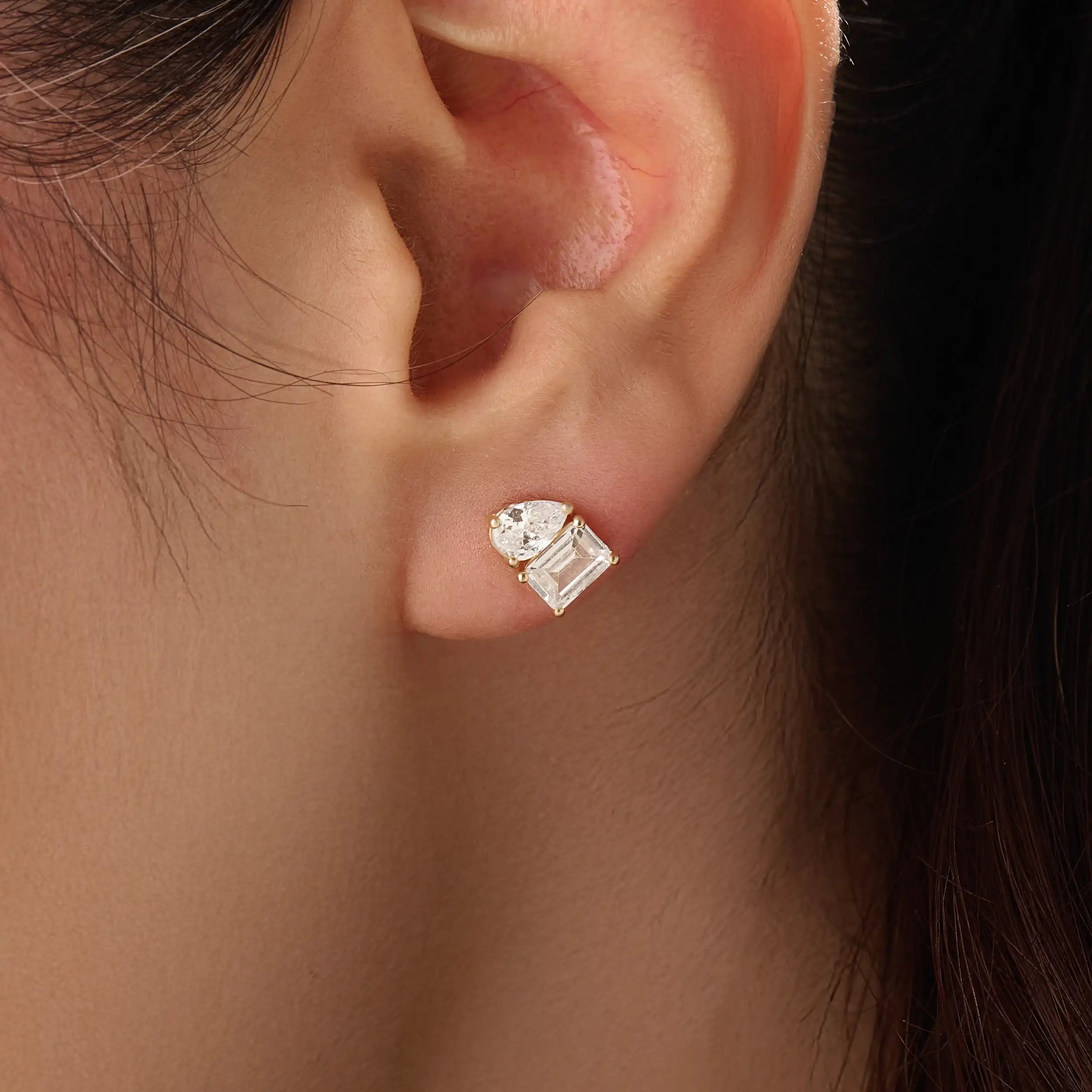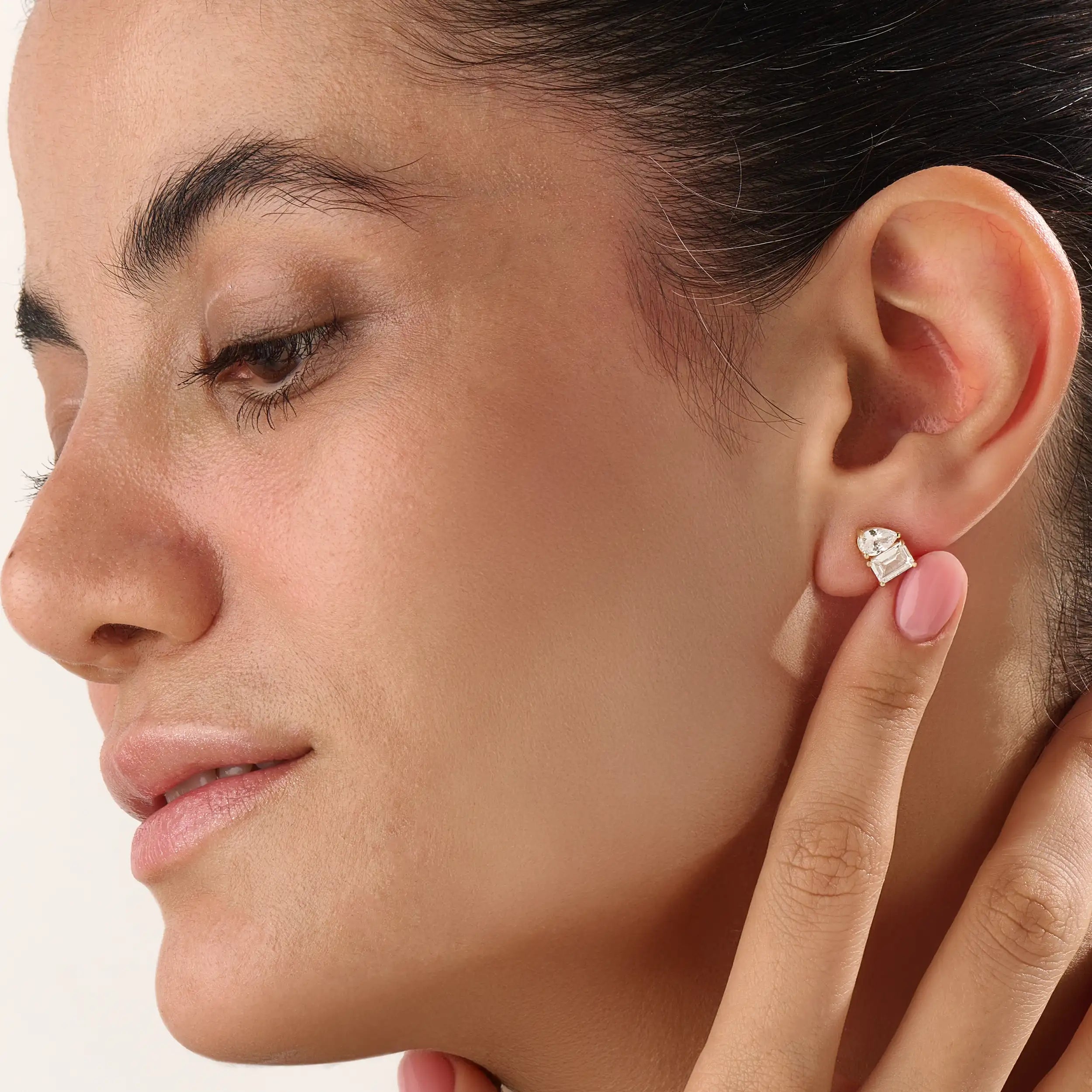 Crafted in 14k Gold Vermeil, these Toi et Moi Earrings showcase two luminous lab diamonds set side by side, representing unity and duality. The gentle golden curves highlight their brilliance, creating a timeless expression of love reimagined with modern elegance.