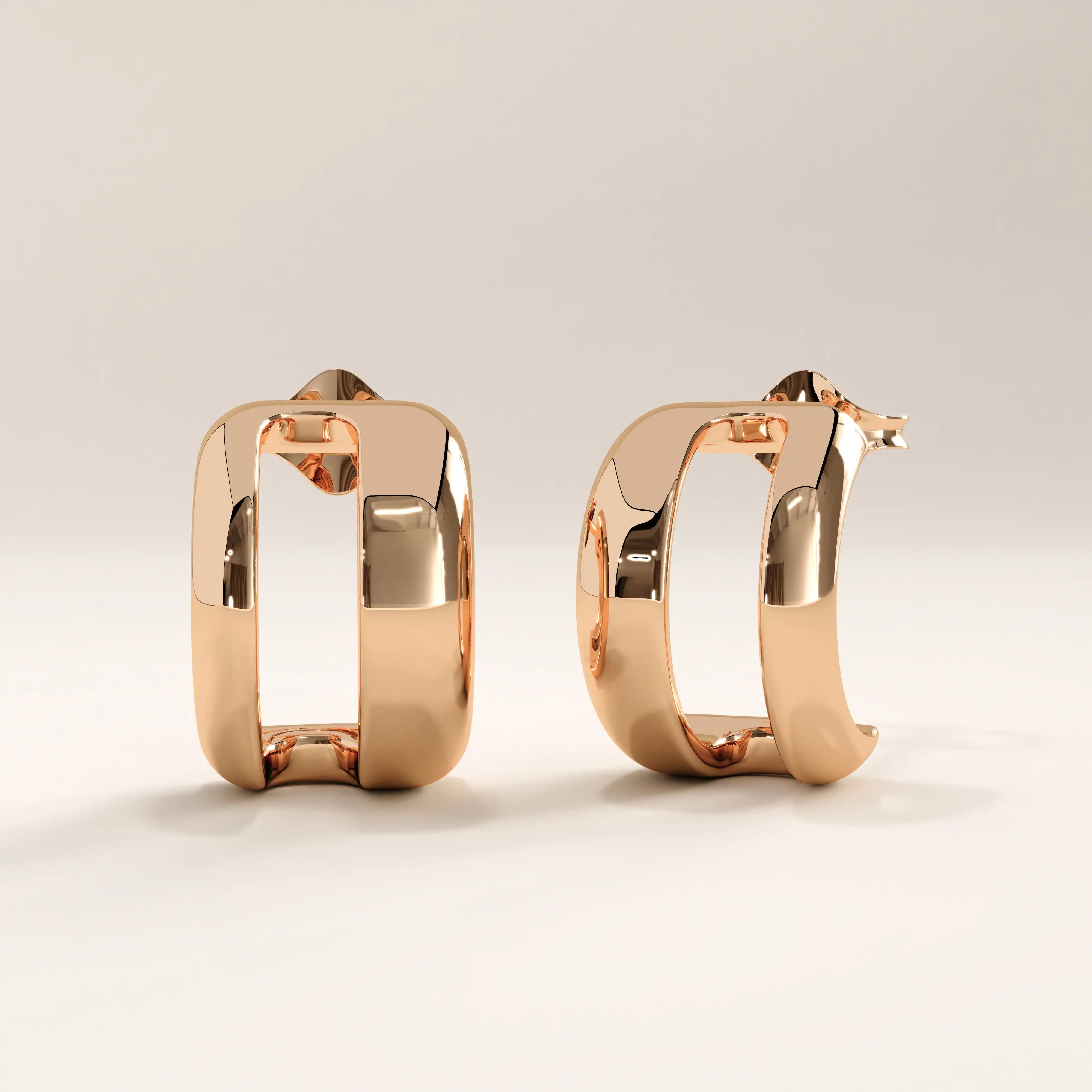 These 14k Gold Vermeil Double Band Earrings showcase a clean, contemporary silhouette with two parallel golden arcs that frame the ear beautifully. Their polished surface reflects light softly, making them a refined statement for everyday wear or elegant evenings. Minimal yet striking, they redefine modern luxury.