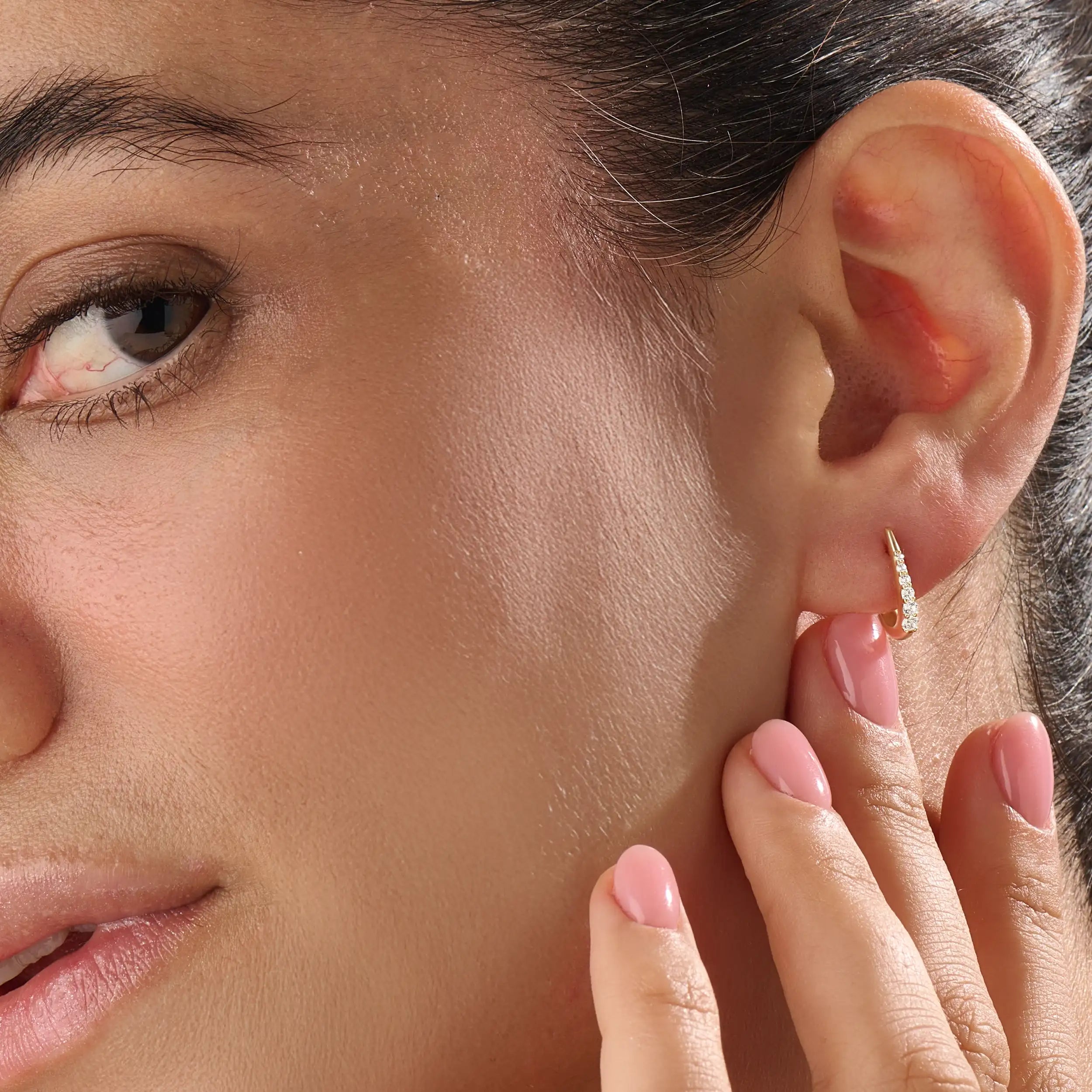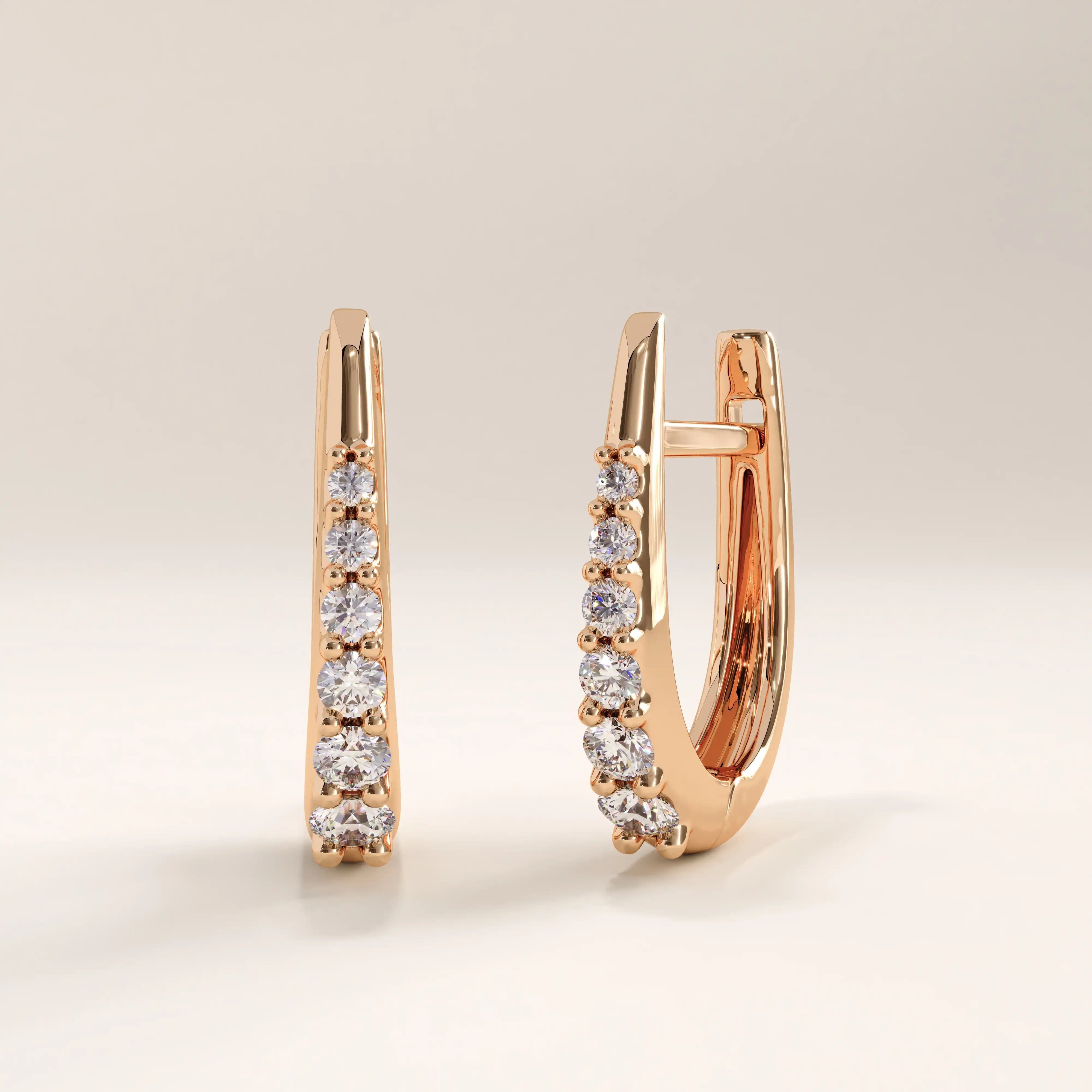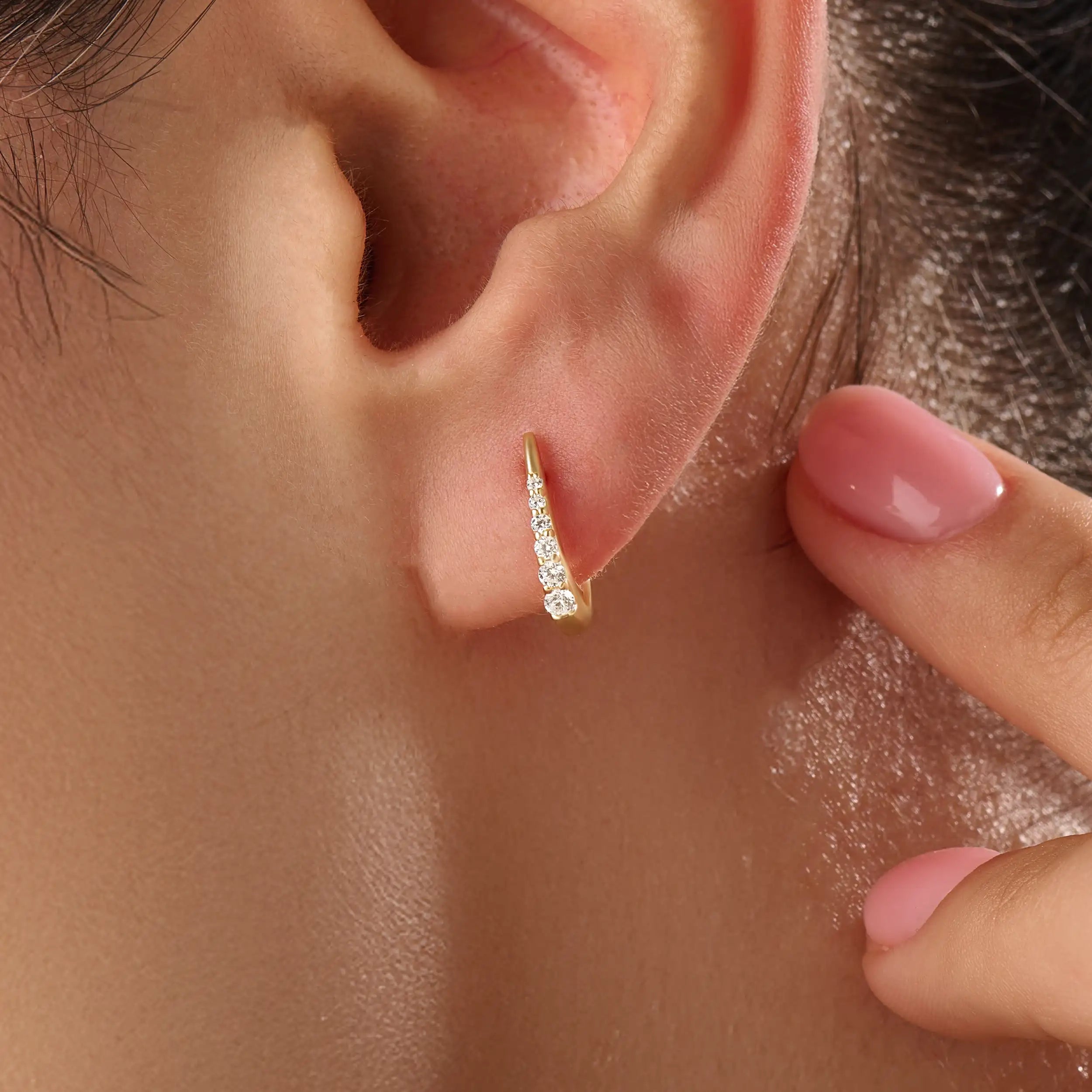 These 14k Gold Vermeil U Shape Hoop Earrings feature a graceful silhouette adorned with pavé lab diamonds for a touch of refined sparkle. The U-shaped design offers a modern twist on a classic hoop, while the high-polish finish enhances every glimmer of light. Perfect for adding understated luxury to any look.
